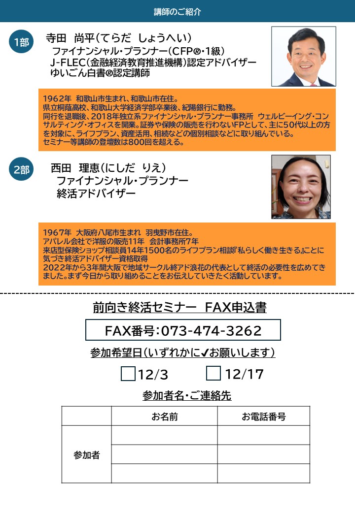 ~今をもっと楽しく、未来をもっと安心に~ 前向き終活セミナー開催!