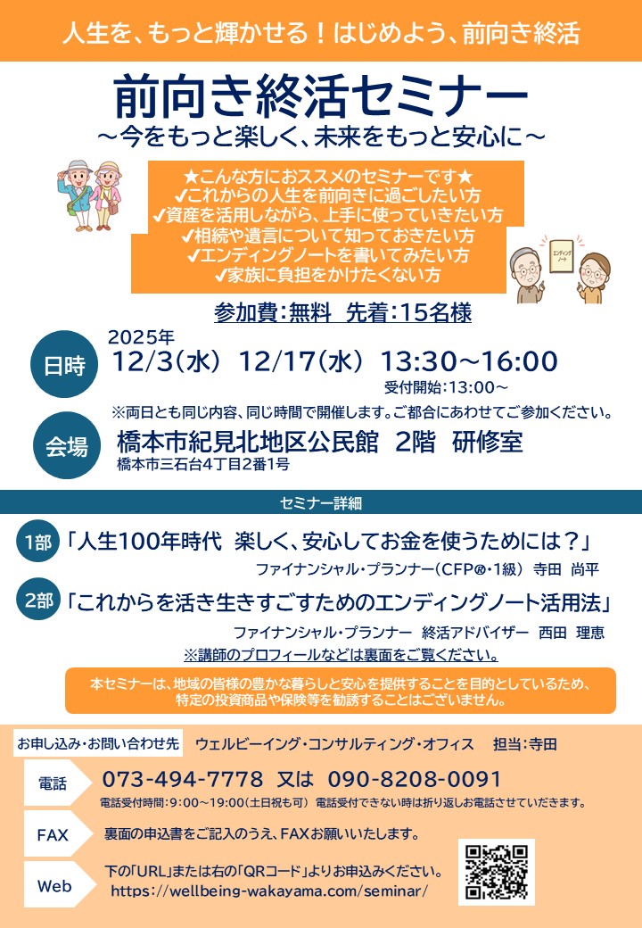「前向き終活セミナー ~今をもっと楽しく、未来をもっと安心に~」開催します!